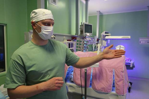 Реанимацией заведует молодой врач Илья Суржко. Он объясняет: эпидемиологическая безопасность — это фундамент и основа выхаживания недоношенных. Дистанция между кувезами — это макробарьеры, а маски и обработка рук — микробарьеры, которые призваны сдержать инфекции.