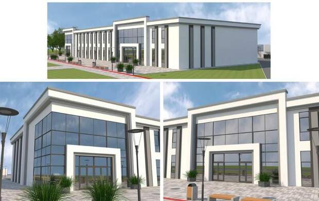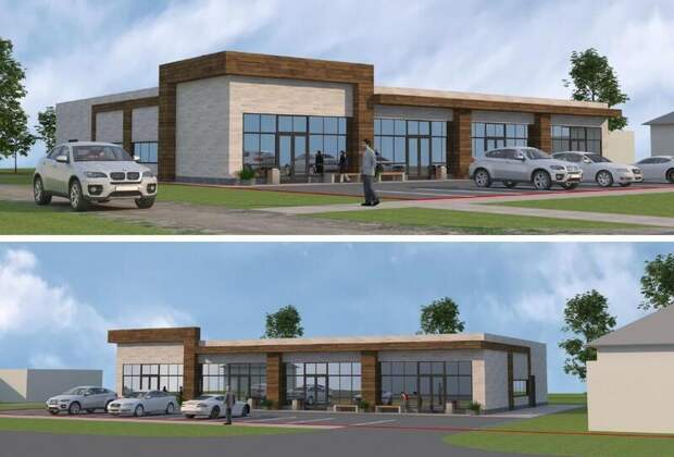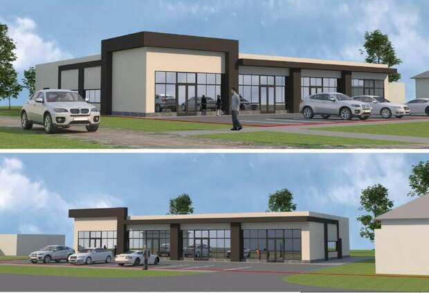 Второй объект – магазин в поселке Бельмесево по адресу Притрактовая, 47 / ул. Детства, 23. Над проектом также работала "Мастерская Золотова". Здание также подразумевается одноэтажным и будет иметь несколько входов. Заказчик готов выполнить благоустройство территории и сделать тротуары. На участке запроектируют парковку на 16 автомобилей. Что касается фасада, то он будет выполнен из композитных панелей. Кроме того, заказчик готов сохранить тополя по соседству. Над входом в будущий магазин инвестор планирует сделать специальные козырьки.