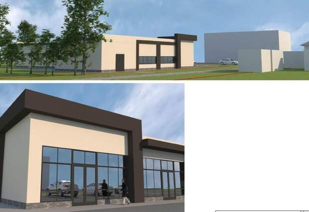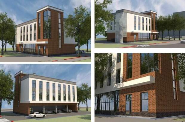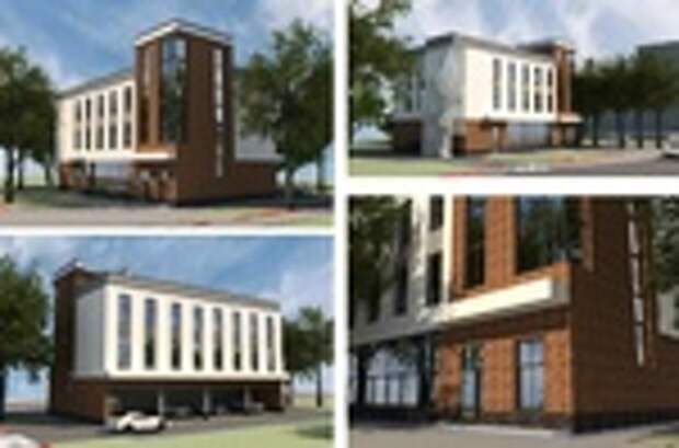 Что касается отделки здания, то за основу возьмут металлокассеты с матовым покрытием. Павел Гуркович напомнил, что ранее проект здания разрабатывала "Мастерская Золотова", но так как сменился заказчик, то оно потребовало переработки. Проектировщик намерен использовать темную цветовую гамму, которая отсылает к фирменным цветам частного охранного предприятия "Сотня". Кроме того, отметил Павел Гуркович, соседние строения, а именно ДК "Мотор", также в основном темных оттенков.