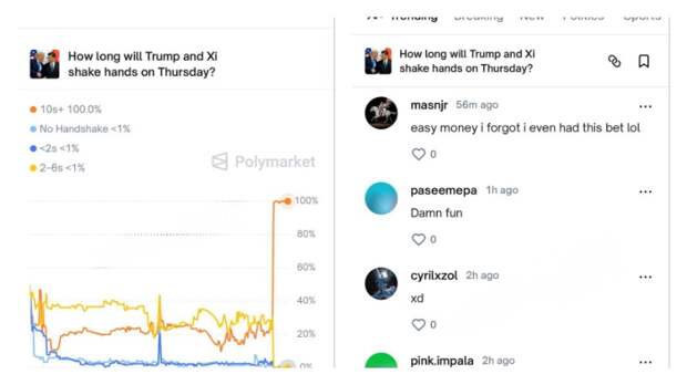 Рукопожатие стало предметом ставок на платформе Polymarket