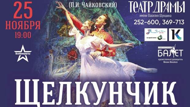 В Алтайском краевом театре драмы имени Василия Шукшина 25 ноября 2025 года покажут знаменитый балет Петра Ильича Чайковского "Щелкунчик". Музыкальное произведение в двух актах создано по мотивам сказки Эрнста Теодора Амадея Гофмана "Щелкунчик и мышиный король".