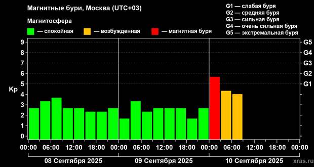 Как пояснили ученые, основная причина магнитных бурь – облака плазмы или потоки быстрого солнечного ветра от корональных дыр. Однако графики солнечного ветра показывают, что к Земле в среду ночью, 10 сентября, вообще ничего не приходило.