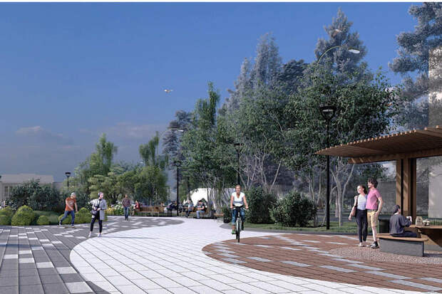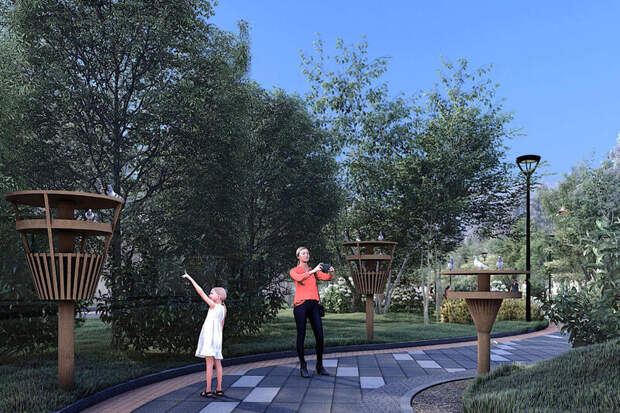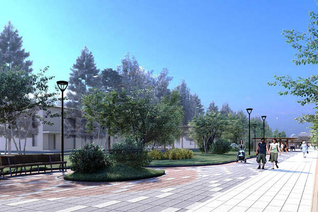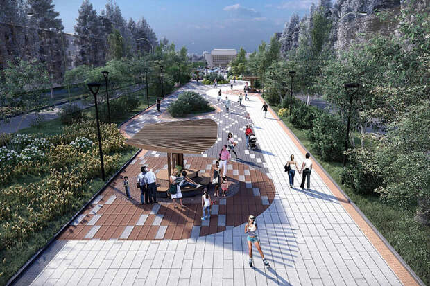 Согласно документации закупки, от подрядчика требуется проработать устройство пешеходных дорожек, установку освещения, видеонаблюдения и малых архитектурных форм, а также озеленение сквера.
