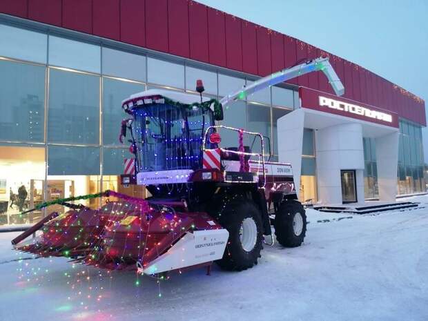 Творчески к новогоднему оформлению подошли и автоцентры. На территориях "Ростсельмаша" и "АСМ-Агро" контурной подсветкой украшены тракторы – в темное время суток техника выглядит как большие светящиеся инсталляции и привлекает внимание проезжающих мимо.