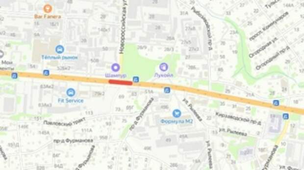 На участке пересечения с Новороссийской улицей произошли изменения. Теперь для водителей доступны три полосы движения: две полосы в сторону центра города и одна полоса из центра в спальные районы.