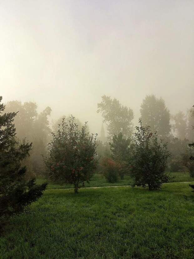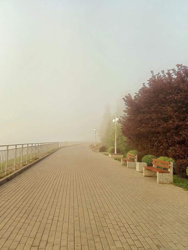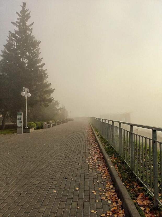 А вот таким туманное утро увидели барнаульцы на набережной Оби и в Нагорном парке.