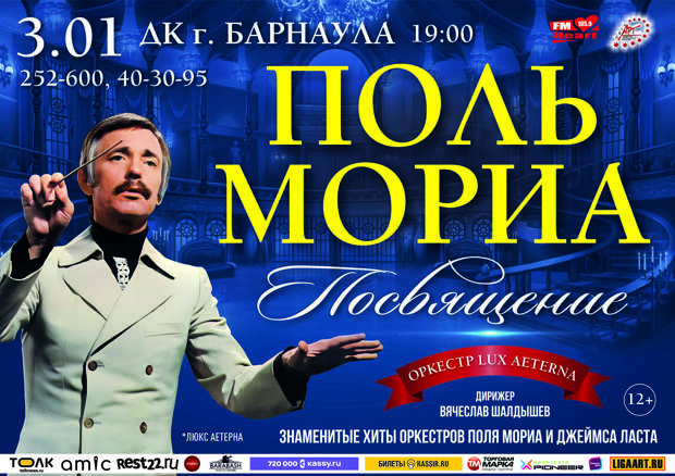 В ДК "Барнаул" 3 января 2026 года представят уникальное музыкальное событие - "Посвящение Полю Мориа" - трибьют великому французскому композитору и аранжировщику.
