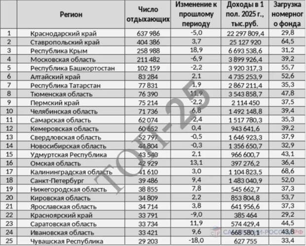 «В Алтайском крае число отдыхающих составило 83 284 – это на 2,1% больше, чем за тот же период прошлого года. Загрузка номерного фонда санаториев составила 52,6%. Доходы санаториев – 4 735 253 рубля», – говорится в исследовании.
