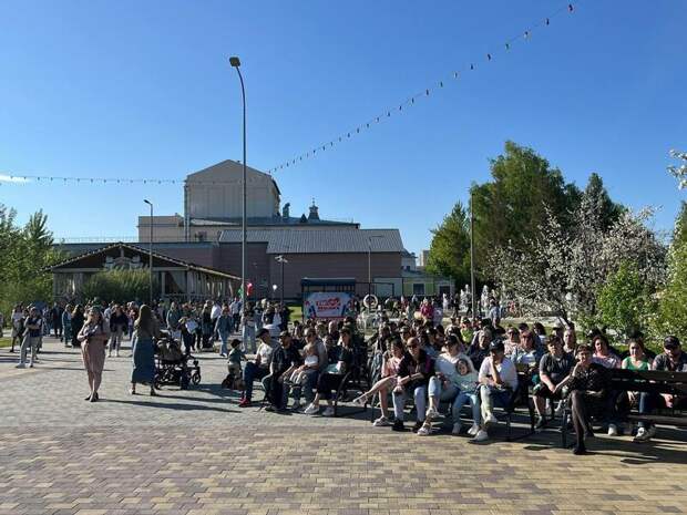 В парке собрались сотни горожан, которые по случаю акции смотрят выступления танцов, музыкантов и прочих творческих коллективов.