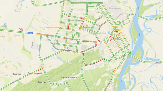 Также движение транспорта затруднено по Советской Армии, Молодежной, Юрина, Малахова и многим другим.