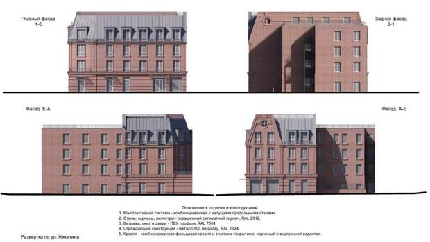 «Для данного здания необходима скатная крыша. Во-первых, она уменьшит визуальный объем, который в первых вариантах казался слишком массивным. Во-вторых, впишется в существующую застройку справа и слева, где здания имеют скатные кровли», — пояснил докладчик.