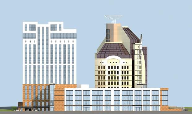 "Город, невзирая на уменьшение численности населения, продолжает расти. Когда мы начинали проектировать эту часть города, мы даже не думали, что три 24-этажных здания будут окружать налоговую. Я склоняюсь, что мы не успеваем за ростом города, этажности. А в бизнес-сити (так архитектор назвал квартал, где расположены объекты – прим.ред.) это вполне допустимая этажность".