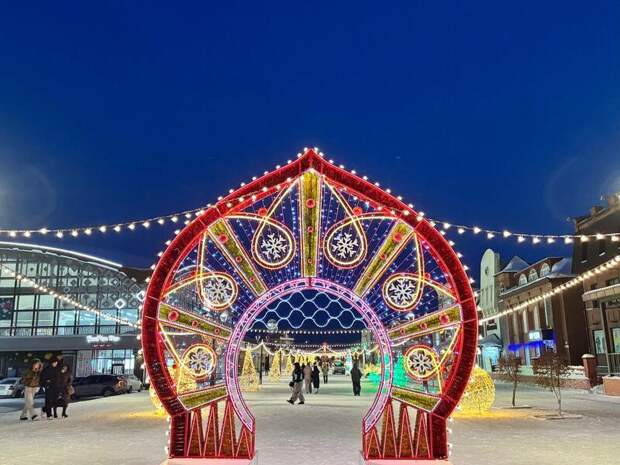 В Барнауле завершилось праздничное преображение улицы Мало-Тобольской: на ней появился традиционный русский декоративный элемент – арка в виде кокошника.