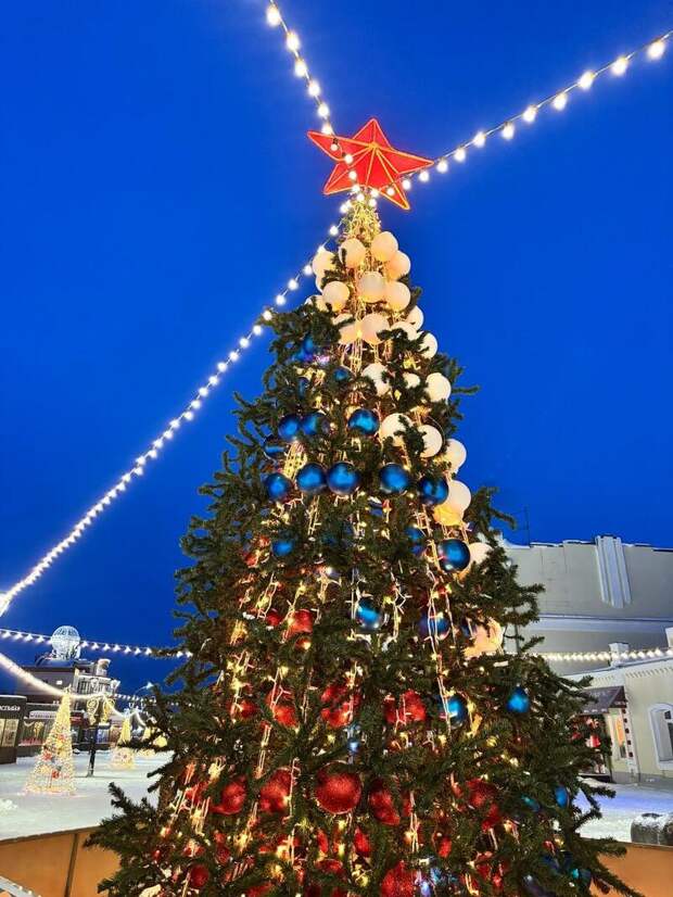 Кроме этого, здесь закончили украшать новогоднюю елку, в которой угадывается российский флаг.Праздничное настроение охватывает весь город, и кульминацией подготовки станут открытия главных новогодних площадок.