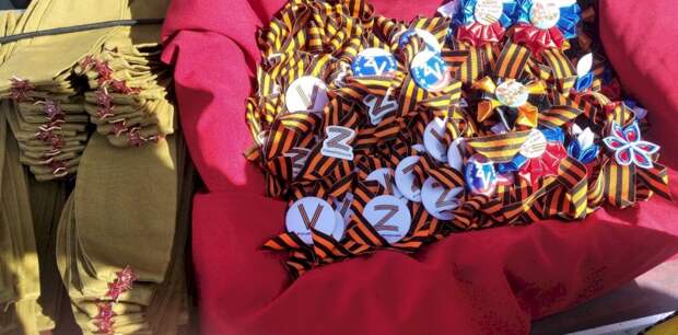 На улицах и в магазинах Барнаула вместе с атрибутикой ко Дню Победы продают банты из георгиевских лент и значки с символикой Z и слоганами в поддержку российской армии. Видимо, они пользуются популярностью у горожан, так как некоторые продавцы торгуют продукцией собственного производства, выяснил корреспондент amic.ru.