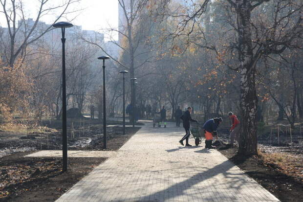 Кроме того, специалисты занимаются озеленением: в парке высадили более 750 деревьев, посеяли газон и оформили цветники. Всего здесь появится около 2,5 тысячи саженцев. В 2025 году на благоустройство парка потратили более 105 млн рублей.