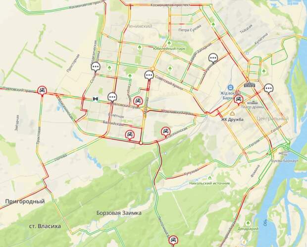 Наиболее сложная ситуация сложилась на улицах Попова, Власихинской, Павловском тракте, шоссе Ленточный бор и на пр. Ленина.