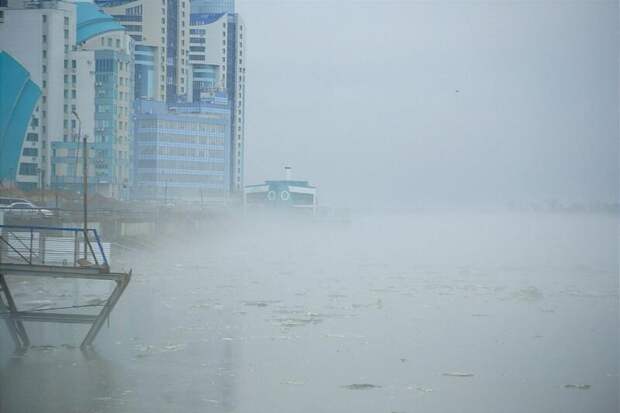Обычно за этим явлением наблюдает много барнаульцев, но на данный момент людей возле реки почти нет