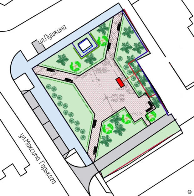 Также предусмотрено установить лавочки и урны, уличные фонари и систему видеонаблюдения, обновить тротуары, подъездные пути и газон.