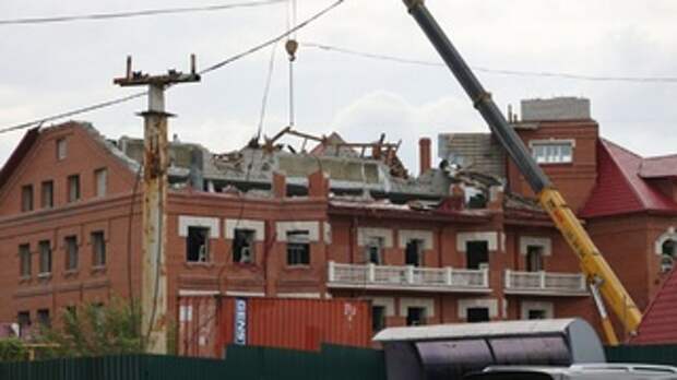 В Барнауле продолжается снос "красного замка", расположенного на улице Малахова недалеко от ТЦ "Волна".