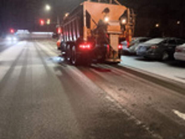 «Для обеспечения безопасного движения общественного транспорта и личных автомобилей в ночную смену, с 4 на 5 ноября, на улицах города проводилась обработка противогололедными средствами дорожных спусков, подъемов и основных развязок», – говорится в сообщении.
