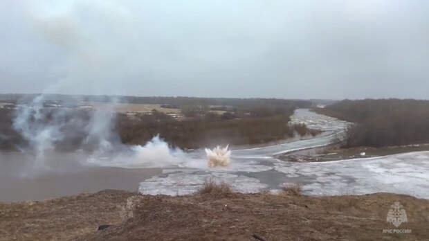 Отмечается, что основная цель работ заключается в том, чтобы ослабить ледовое поле для обеспечения безопасности при прохождении паводка.