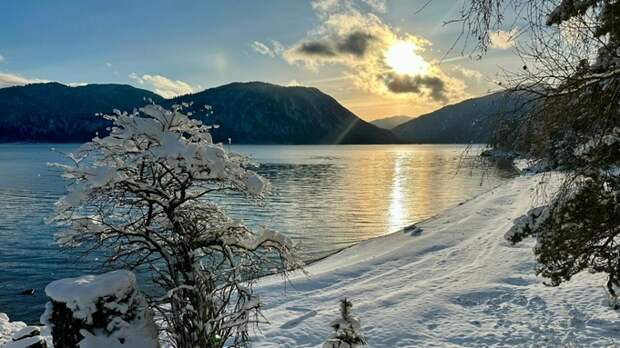 На берега Телецкого озера в Республике Алтай пришла настоящая зима.