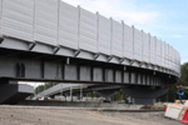 Напомним, что в июле здесь открыли металлический путепровод: его верхняя часть состоит из семи мощных опор с пролетом более 300 метров.