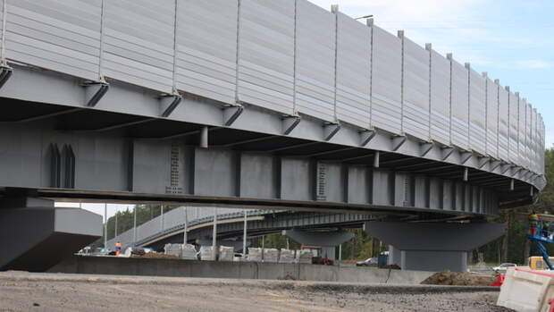 Напомним, что в июле здесь открыли металлический путепровод: его верхняя часть состоит из семи мощных опор с пролетом более 300 метров.