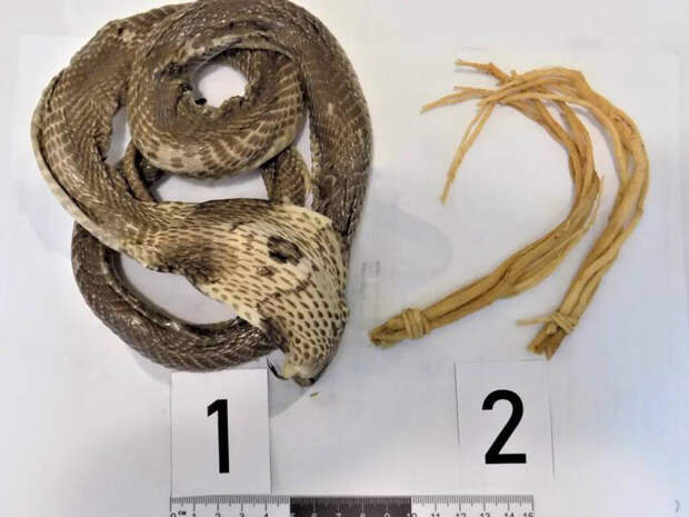 Экспертиза показала, что внутри находилась моноклевая кобра - вид, находящийся под угрозой исчезновения. Его перемещение через границу запрещено правилами СИТЕС - международной конвенции, регулирующей торговлю редкими представителями дикой фауны.