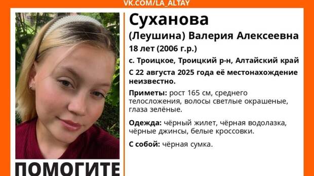 Суханова Валерия Алексеевна исчезла 22 августа – с тех пор ее местонахождение неизвестно.