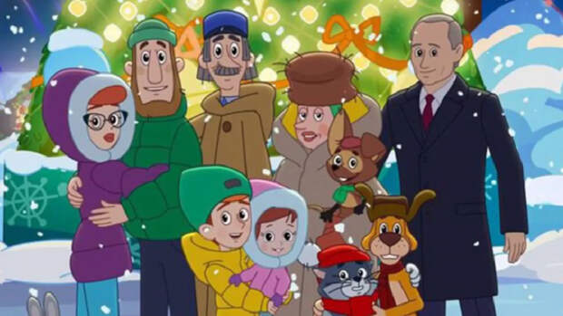 Ранее в СМИ были опубликованы кадры, где Путин изображен вместе с Дядей Федором, котом Матроскиным и почтальоном Печкиным.