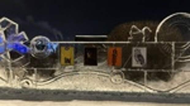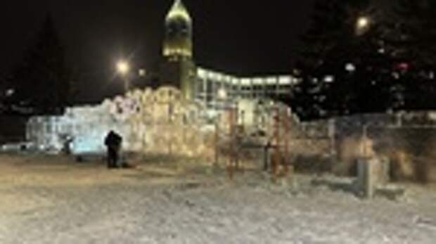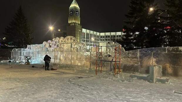 Она считается самой высокой в России, а в этом сезоне ее ледовый городок оформили в "новом русском стиле" с богатой резьбой и национальными мотивами.