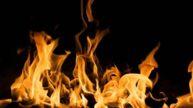 На месте падения обломков дрона вспыхнул пожар