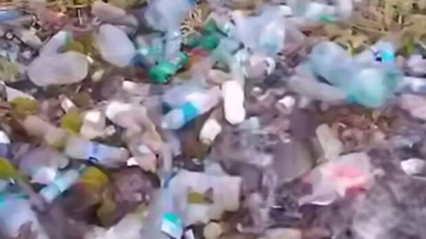 Рядом с источником и вдоль дороги были разбросаны пластиковые бутылки, салфетки и другой мусор