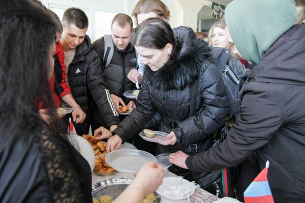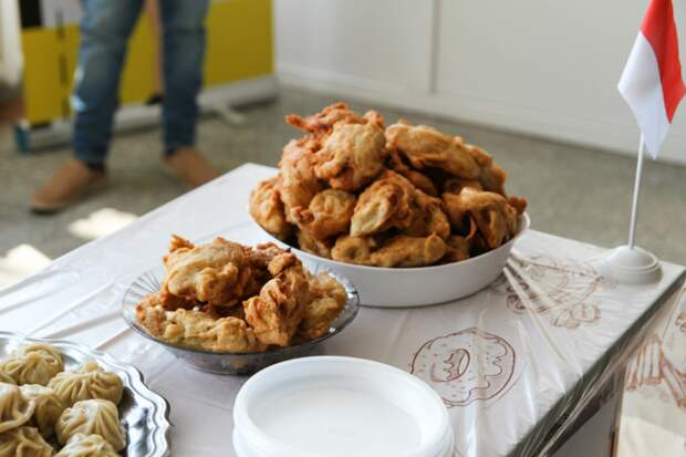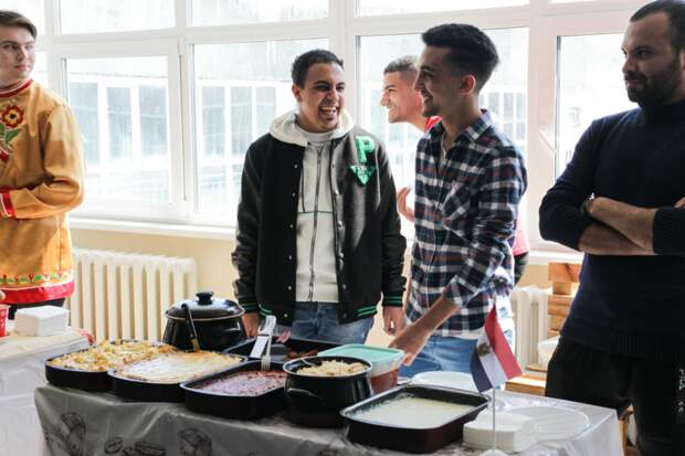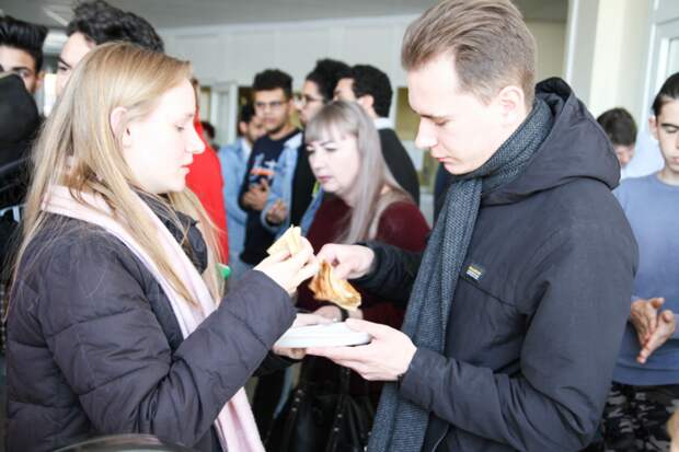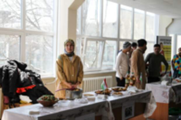 В одном из корпусов они представили свои блюда для всех желающих.Здесь были как мясные угощения, так и салаты и сладости. Например, студенты из Индонезии приготовили для гостей своё национальное блюдо – жареные бананы, покрытые карамелизированным сахаром. На столах присутствовали и привычные нам блины русской кухни и плов – таджикской. Отведать кулинарных изысков пришли больше сотни гостей.