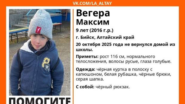 В Бийске объявлены срочные поиски девятилетнего мальчика, который не вернулся домой из школы 20 октября. Информация о пропаже ребенка распространена поисковым отрядом "ЛизаАлерт".