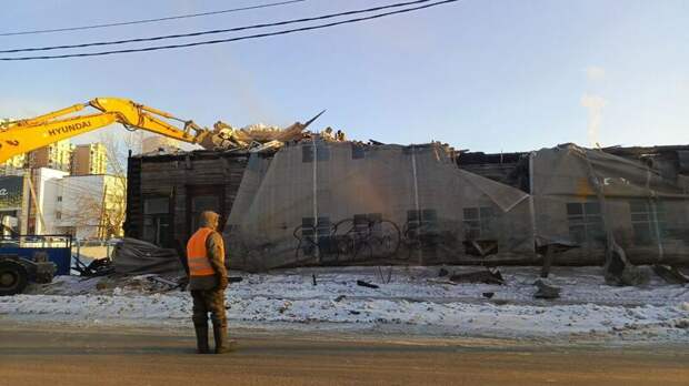 В Барнауле сносят двухэтажный деревянный дом 1930 года постройки, расположенный на Красноармейском, 34. После пожара, произошедшего в июне 2016 года, дом признали аварийным. Обугленное здание закрыли баннером, в таком виде оно простояло несколько лет - до сегодняшнего утра, до 24 января 2025 года.