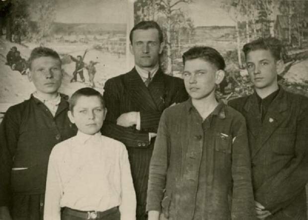 Герман Титов в группе членов литературного кружка, село Полковниково