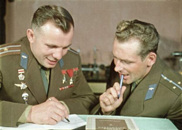 Герман Титов, курсант военно-авиационного училища, с другом Юрием
