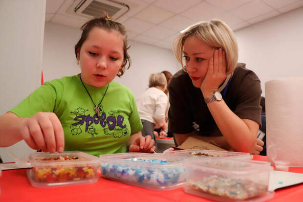 Кстати, во время перерывов между партиями участники краевого турнира могли вкусно поесть в специальном помещении, где их обслуживала кейтеринговая компания. А в другой комнате ребята мастерили различные поделки, помогали им в этом сотрудники АНО "Шаг в будущее 22" и ее руководитель Юлия Федорова.