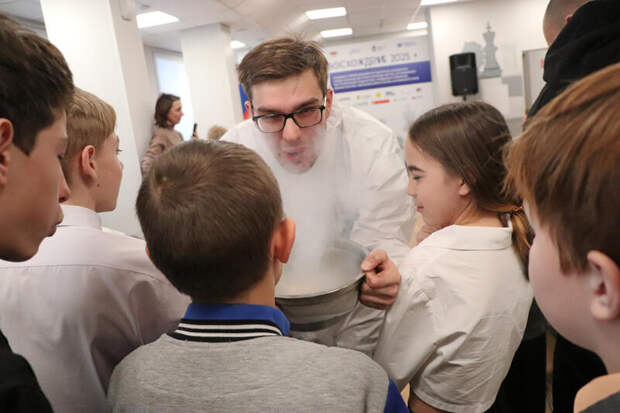 Погружение в нее начинается с церемонии открытия. В этот раз вокальный номер исполнила Ольга Семенова, затем внимание ребят захватили фокусник Виктор Першаков и команда "Мистер Фризи" со своим криошоу, в котором используется жидкий азот. Кульминацией стало появление Деда Мороза и Снегурочки, они водили с ребятами хоровод, пели, развлекались и, конечно, раздали всем сладкие подарки.