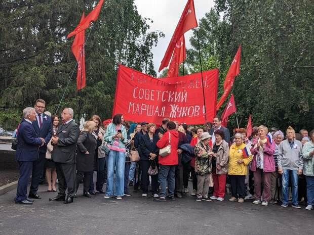 Закладной камень с надписью "Здесь будет установлен памятник четырежды герою Советского Союза маршалу Г.К. Жукову", который ранее стоял на этом месте, демонтировали 31 мая. По словам Павла Князева, его было решено сохранить и отправить в музей.
