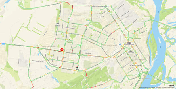 Улицу Северо-Западную затор сковал на пересечении с пр. Ленина. Движение по ул. Матросова затруднено от ул. Юрина до ул. Бехтерева.