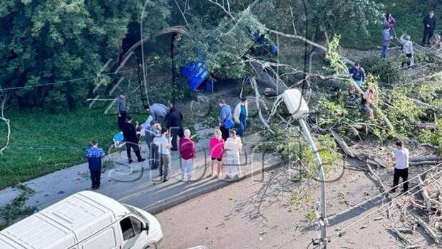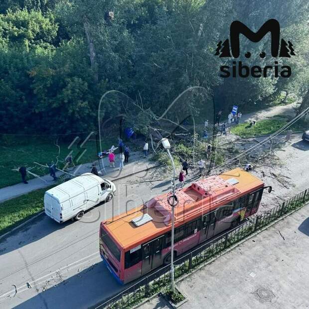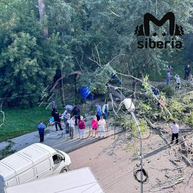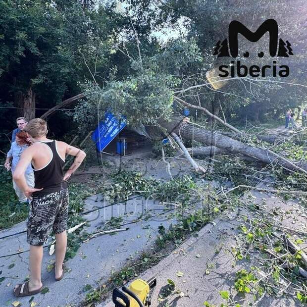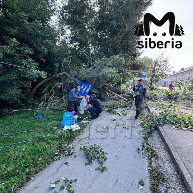 В Новосибирске дерево рухнуло на автобусную остановку с людьми.