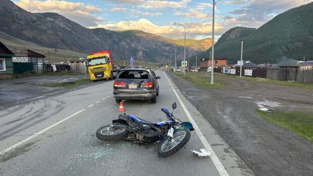 "17-летний местный житель за рулем мотоцикла Racer RC-250 не выбрал безопасную дистанцию до движущегося впереди транспортного средства и допустил столкновение с автомобилем Toyota Caldina под управлением 43-летнего жителя села Улаган", — рассказали в полиции.