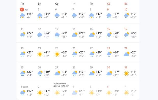 Популярные сервисы прогноза погоды утверждают, что весь месяц будет пасмурно