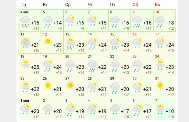 Стоит отметить, что, согласно долгосрочному прогнозу, в августе дожди не прекратятся. Первая неделя сентября также будет очень пасмурной.