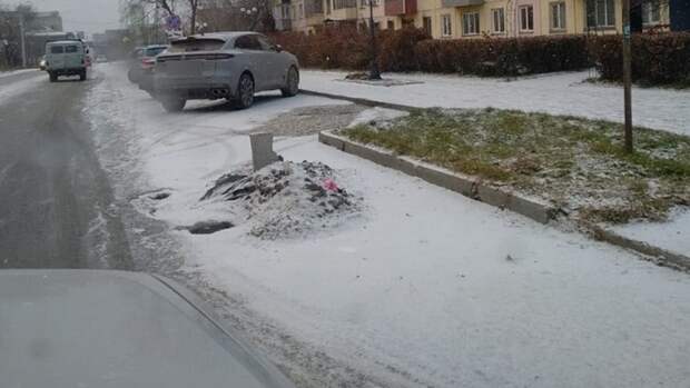 В Бийске жители своими силами обозначили опасный участок дороги, превратив открытый колодец в "могильный холм". Об этом пишет Telegram-канал "Инцидент Бийск".
