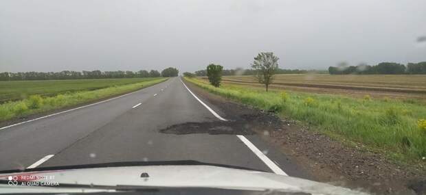 На кадрах видно, что дорога действительно сильно разрушена, но между ямами при этом нанесли свежую разметку.